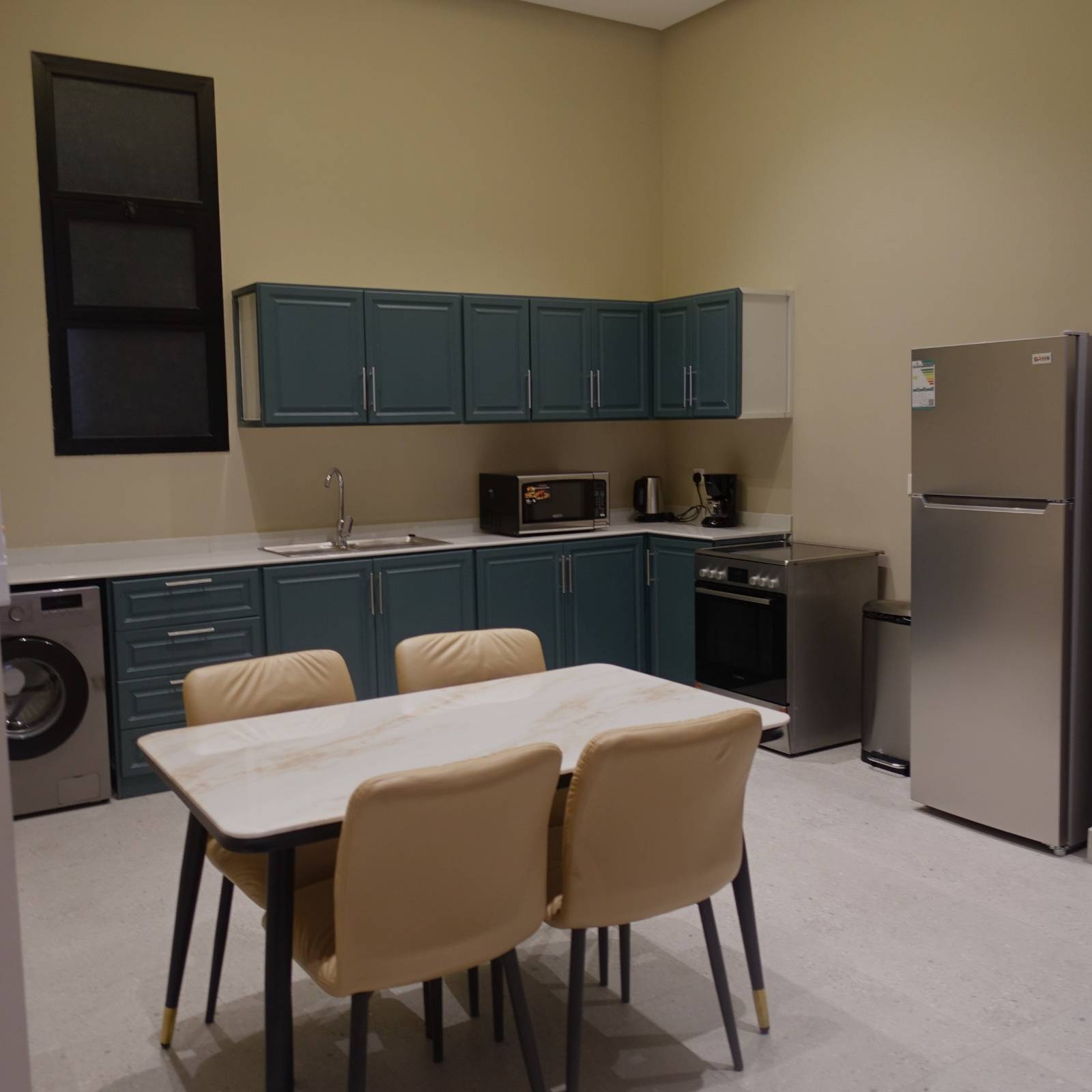 Spacious Accommodations: Makeen vip in Riyadh offers a spacious apartment with three bedrooms and three bathrooms. The ground-floor unit features a living room, dining area, and private entrance.